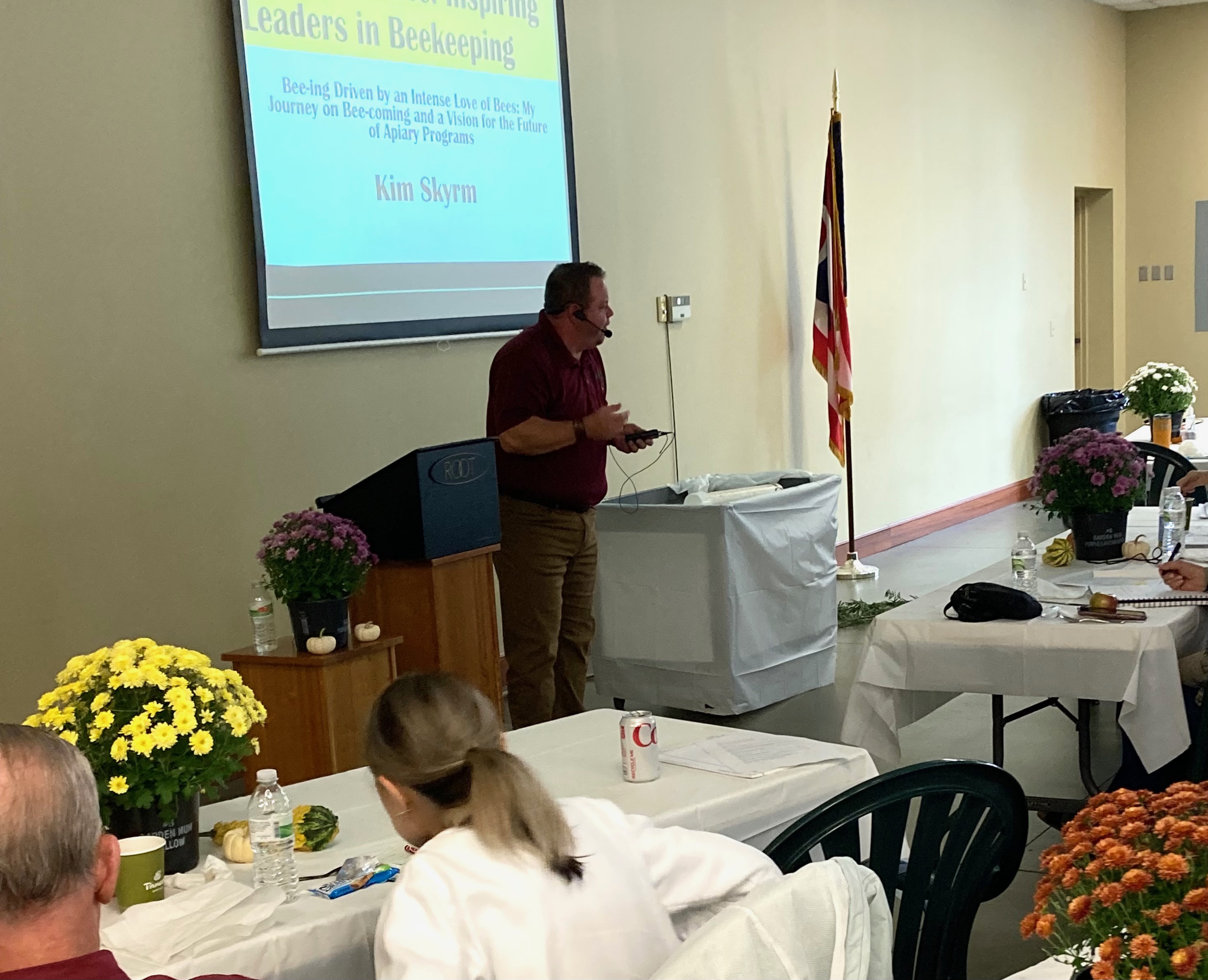 As we planned and time flew by, so many little details kept coming into play that none of us had even thought about! I can’t tell you how many pages of notes I filled up as we had meeting after meeting about the event. An event of our size (we had about 75 people in person) isn’t the biggest event, especially in the bee world, but for three people with minimal experience, it was tough! Planning 14 speakers, in-person and virtual tickets, catering, social media, many Amazon purchases for everything from hand sanitizer to table cloths and everything in-between was difficult to juggle while also putting out a monthly magazine, a daily email blast, some renewal mailings, posting articles online, plus everything Jerry and Jen do. I even went on a week vacation in there!