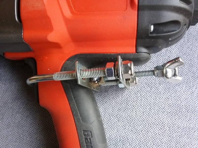 Select a U-bolt for the controller that slides very snuggly over your drill handle at the drill’s trigger location.