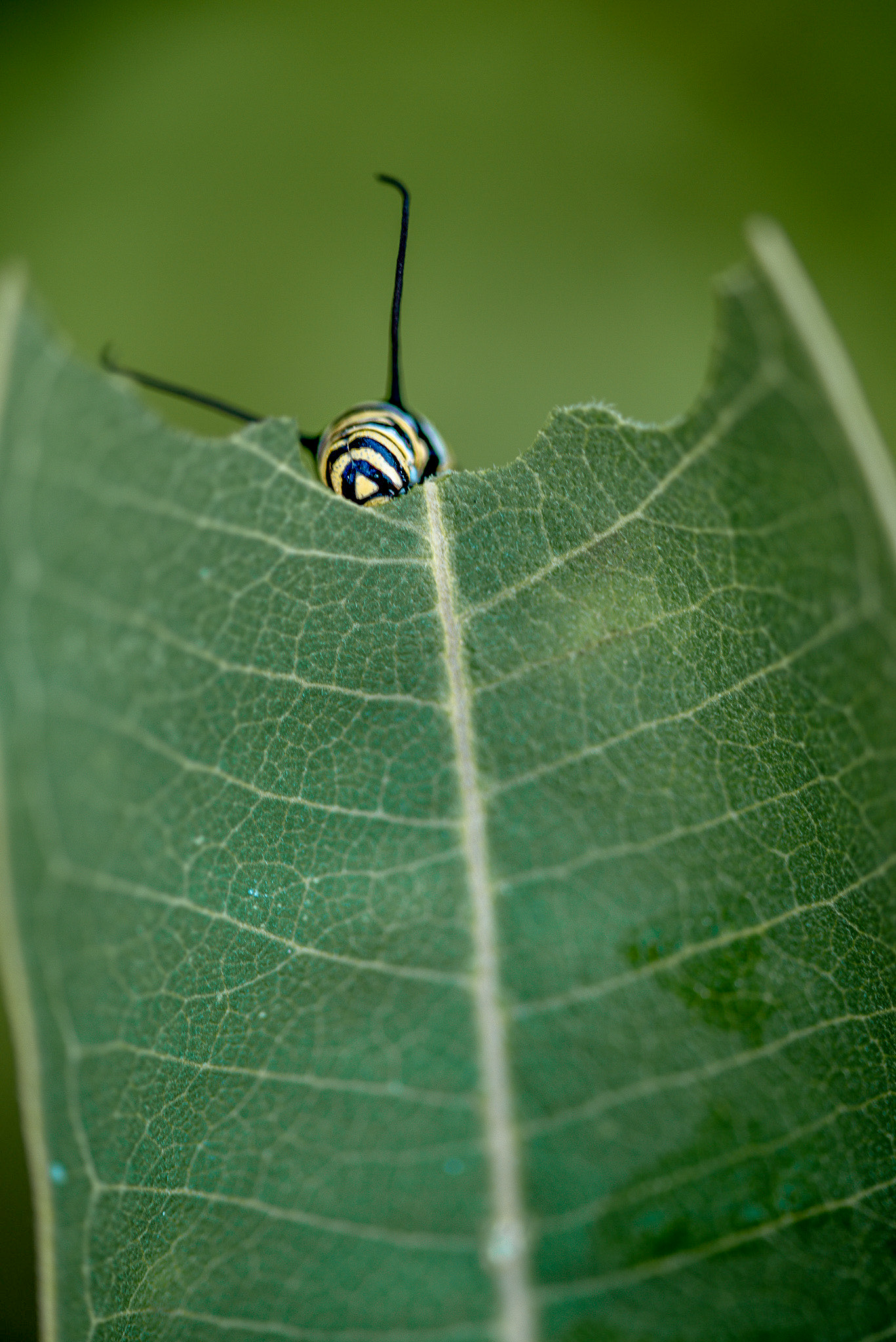 The days in the Farmer’s Almanac stacked and by the end of August, there were so many monarchs on the farm, that we were dodging them as we mowed. They frequented the patches of flowers that now broadcasted a constant waft of floral sweetness throughout the sun-beaten fields. One day, as I was cutting along the edge of one of the patches, I saw the most intricately striped, yellow and black caterpillar crawling along the edge of one of the flowers large, waxy leaves. A closer inspection revealed that the caterpillar was munching on the leaf like a diligent farmer harvesting his crop. Left to right, right to left, I watched in disbelief as the cat (butterfly talk for caterpillar) consumed almost the entire leaf in just a few minutes time! Reveling in what I had just witnessed, I decided that it was time to research this flower and see what kind of ecosystem I had unfolding in front of my eyes.