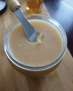 “No, they’re both honey,” I respond. “The cremed is more solid, grainier. The liquid goes down smooth. But it’s all the same product.”