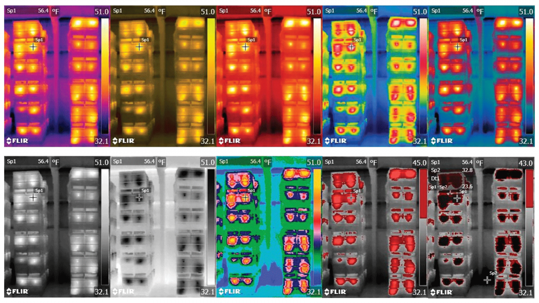 FLIR Tools has three main components. The first is the ability to manipulate images such as changing color pallets, altering contrast, bracketing temperature ranges; all of which can alter the appearance of the image. This can be very useful for visual inspection and interpretation of IR images. The second is the ability to pull out actual temperature measurements. By moving the cursor, the temperature of any part of an image can be displayed. Choose a rectangle or ellipse to mark out and obtain the average temperature of any portion of an image; and FLIR Tools can determine differences in temperature from one part of an image to another. I highly recommend exploring these tools; you’ll learn a lot about the IR images that you take.